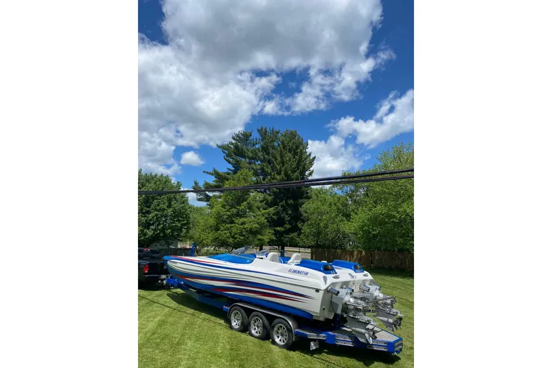 This stunning 2007 Eliminator 30 Daytona ICC is powered by twin Ilmor 710hp engines (530 hours) paired with IMCO SC outdrives, IMCO extension boxes, and Bravo 35P props. It's fully rigged with IMCO full hydraulic steering and a tunnel tab, delivering incredible control and performance. Cruises effortlessly at 50-60 MPH and has reached an impressive 141 MPH top end (with 37P props).