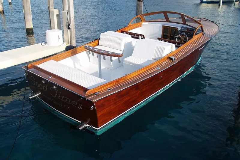 You have never seen a boat like this before! There were only about 50 or so built in St. Simons, GA in the late 1940's through the 1950's. The workmanship and performance is far superior to similar vintage vessels in her class. This boat has a 11.5-foot beam with a very roomy walk around open cockpit. Up to 6 or 8 adults are very comfortable aboard. Powered with twin 350 C.I. fuel injected Gas Sea Max engines with 400 total hours and plenty of performance.
