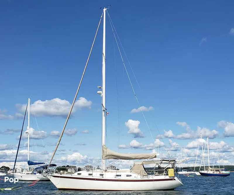 This particular vessel is in good condition and ready to sail. At just under 38 feet in length with a 12-foot beam and a 60" shoal-draft keel, she offers a stable yet responsive ride, ideal for everything from weekend getaways to spirited club racing. Her graceful lines and strong fiberglass hull are complemented by a masthead sloop rig with aluminum spar and stainless standing rigging, giving her both the look and function of a capable offshore boat.