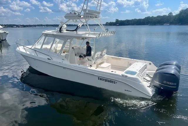 The Everglades 350 LX is a versatile express-style boat designed for serious offshore adventures and luxurious overnight stays. Built with a deep-V fiberglass hull, it delivers a smooth, stable ride even in choppy conditions, making it ideal for both saltwater fishing and cruising. It is powered by triple Yamaha 350 four strokes as well as a second station that can be lowered. Furuno 12: Screens with Autopilot. Digital throttle and has been dry stored for many years.