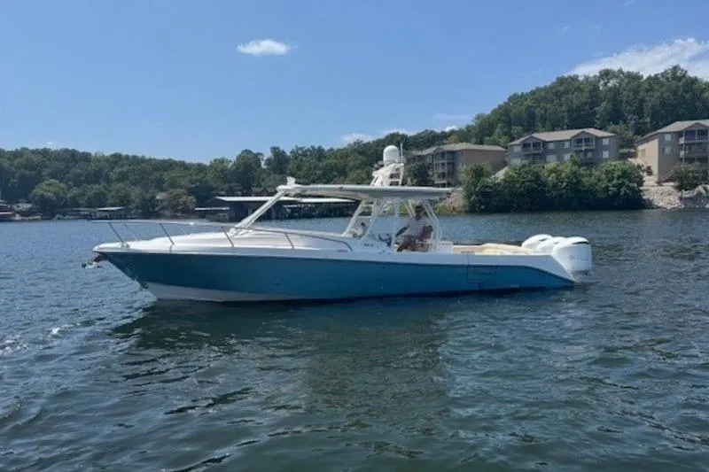 In the creation of the 36-foot overnighter, we honed in on extravagance and relaxation, while maintaining our signature fit and finish. Your guest will be more than comfortable in the spacious 100-square-foot lounging area, featuring an L-shaped lounge that serves as dining area or sun-bed. The 360LXC comes standard with a 32-inch retractable flatscreen in the lounge area, an electric stovetop and outdoor cockpit cooking area, abundant food and cooler storage, and a fully equipped wet-bar and mixing station. Its massive aft bench seat comfortably seats six while the redesigned helm featuring ergonomic captain and companion seating has plenty of room for three. The boat easily sleeps five to six passengers. Both the cabin and the cockpit-lounge area are independently temperature controlled to keep you comfortable in any weather conditions.