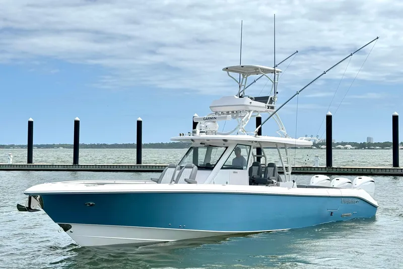 Built by Everglades Boats with RAMCAP construction, the 395CC is known for its solid, dry ride and long-term durability, making it one of the most respected 39-foot center consoles available.