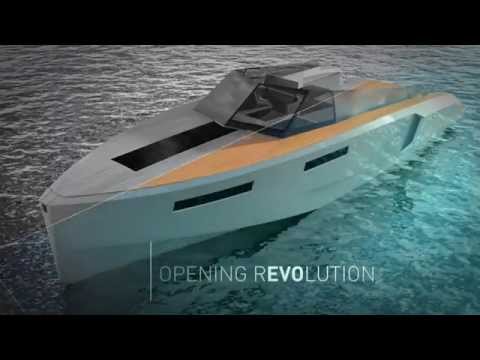 This boat is equipped with a submersible platform that can carry a sea doo, forward there is a transforming space.