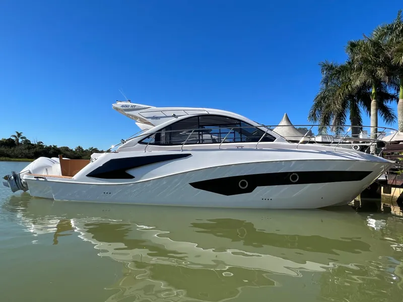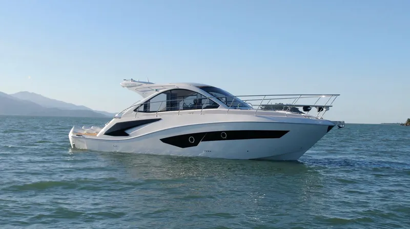 This 2024 Evolve 400HT is powered by Triple Mercury Verado 300 Hp outboards. Perfect weekender cruiser. Safe, ideal for cruising, and seaworthy, plenty space and comfort, as well as safety and innovation.