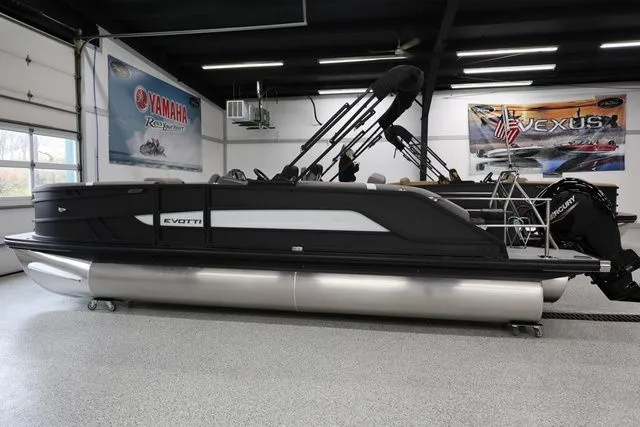 2026 Evotti 521 CS, The 2026 Evotti 521 CS is a 23.5-foot (deck length ~ 23'6") convertible-stern pontoon boat - part of Evotti's 500 Series - designed to deliver a versatile mix of comfort, style, and performance. Powered by a single outboard (commonly a 150-200 hp Yamaha or Mercury package), this pontoon balances responsive handling with fuel efficiency - ideal for cruising, watersports, or relaxed outings. Its "CS" (Convertible Stern) layout offers flexible seating/lounge configurations, a spacious deck with seating for up to ~11 people, and plenty of room for gear - making it great for family trips, lake days with friends, or casual cruises. With high-end touches such as modern styling, optional premium flooring/upholstery, and a fuel capacity around 50 gallons, the 521 CS delivers a nice mix of practicality and refined comfort for weekend adventures on the water.