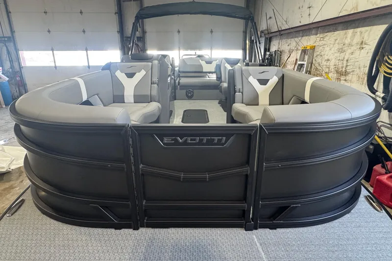 This 2026 Evotti 521 Convertible Stern delivers the perfect blend of performance, luxury, and versatility in a 21' triple-toon platform. Powered by a Yamaha F150XD Mechanical in gray with full mechanical prerig and single engine rigging, this boat is built for smooth, confident performance with hydraulic steering and a 50-gallon fuel tank.