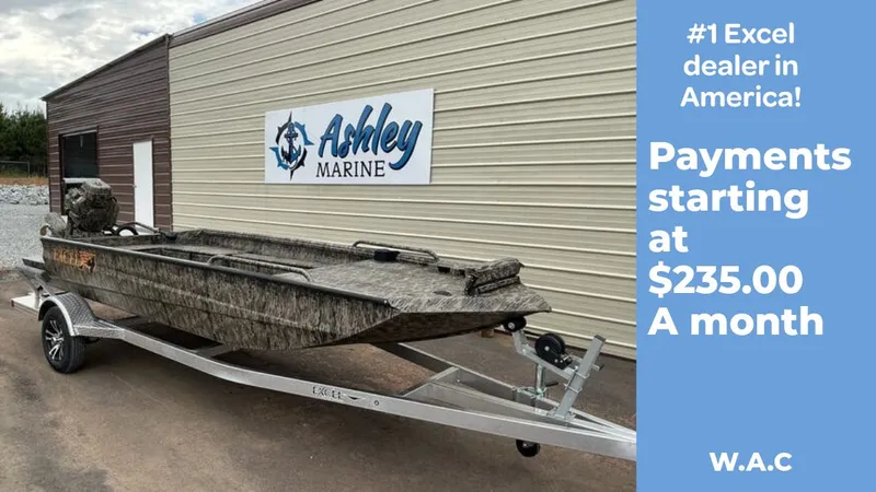 BRAND NEW 2026 EXCEL 1754 SHALLOW WATER F4 .125 HULL MUD BUDDY HDR 40 TIMBER KING DIAMOND CITY ALUMINUM TRAILER MOSSY OAK CAMO MOSSY OAK ENGINE SPUD POLES LED LIGHT BAR TROLLING MOTOR PREWIRE 11 GALLON BUILT IN TANK LIVEWELL