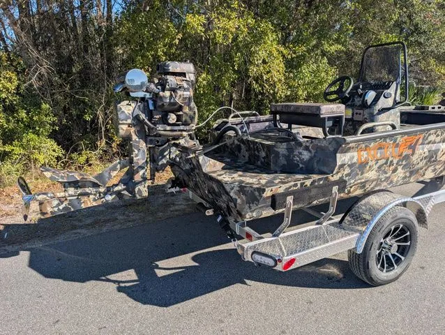 2026 Excel Shallow Water F4 CC powered with a Mud Motor HDR 5400 Vanguard Tall EFI engine and includes the Exciter Aluminum trailer
