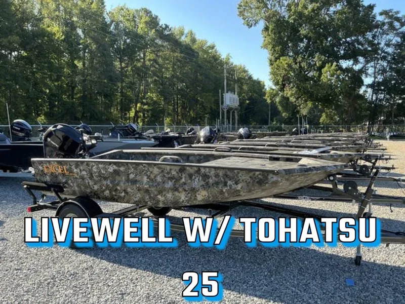 BRAND NEW FOR 2025! 1554 EXCEL WITH A TOHATSU 25HP AND TRAILER ONLY $15395.00 LIVEWELL INCLUDED FUEL TANK INCLUDED CAMO PAINT INCLUDED