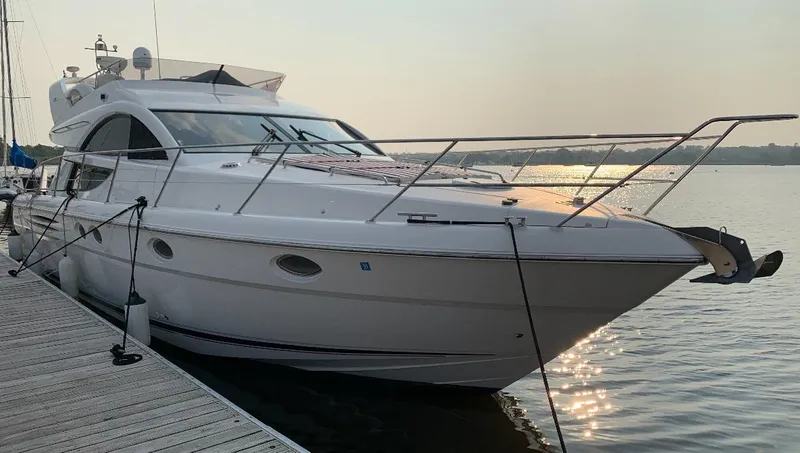Beautiful 2007 Fairline Phantom 46. A true British classic. Fitted with Twin Volvo D9 500HP Engines. Only 1200 Hours. Clean and generous accommodations for six in a superbly practical three-cabin layout. Features Include Bow & Stern Thruster. New Fridg, wine cooler and Ice Maker in salon. New back-Up Camera. New Interior and exterior soft goods, 2022. New GPS, New Stereo and Speakers. Annual Service and Bottom Painted. The Phantom 46' is fast and efficient. She cruises at 25kt. CALL THE LISTING BROKER FOR MORE DETAILS.