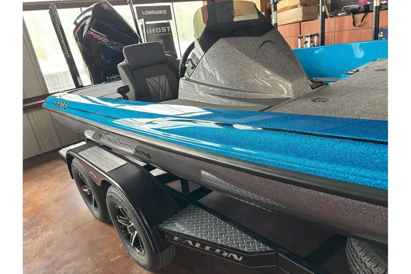 New 2026 Falcon F205 powered by Mercury 250L PXS TM. Marine Master Tandem Axle Trailer. Boat equipped with: Minn Kota Ultrex 112/DSC/MR Humminbird XPLORE 12 CMSI at Console Humminbird XPLORE 9 CHO at Bow Minn Kota 440 PCL 4 Bank Charger 2 - Blade Power Poles w/Brackets Bob's 10" Action Hydraulic Jack Plate w/Gauge F205 Padded Front Deck LED Livewell/Courtesy/Compartment Lights Blinker Trim at Helm Foot Throttle w/Adjustable Slide 1 - Fish Seat 1 - Bike Seat Falcon Custom Cover