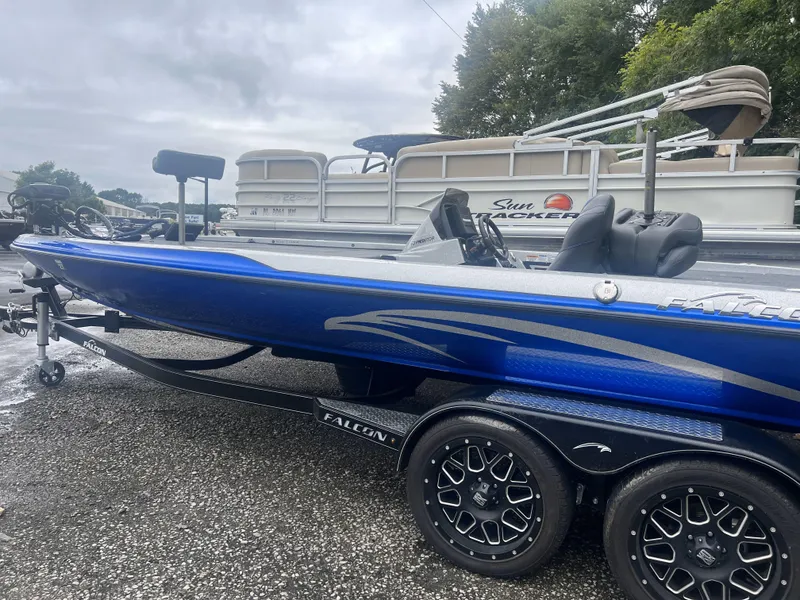 Used 2023 Falcon F21 Predator powered by Mercury 250 hp PXS TM. Marine Master FALC21PRED Tandem Axle Trailer. ONLY 13 hours of running time!Mercury Warranty Expires 02/02/27.Boat equipped with:Minn Kota Quest 36V Trolling MotorSolix 12 and Solix 102 - Raptors with Anchor Light2 - New Power BrakesAtlas Hydrulic Jack PlateBlue Tooth Audio SystemBoarding LadderAtlas Jack PlateReFlex Cockpit Flooring