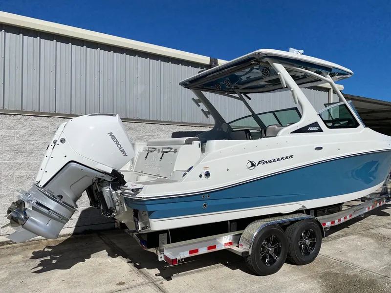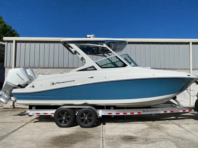 The 2024 Finseeker 280 DC is a sophisticated dual console boat designed for those who appreciate both performance and style on the water. Measuring 28 feet, this vessel combines spaciousness and versatility, making it perfect for family outings, fishing trips, or leisurely cruising. Its sleek design not only enhances aesthetics but also ensures stability and smooth handling, allowing for confident navigation in various conditions.
