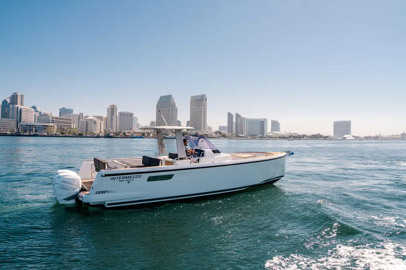 With her expressive design, exhilarating power, versatile open cockpit, limitless comfort, and countless amenities throughout, the 36 Fjord Xpress is a premium outboard handcrafted vessel with high demands on quality and luxury. Not to mention her trend-setting appearance.Be prepared for an unprecedented driving experience! With a top speed of 45 knots her Joystick Operated Twin Mercury Verado outboard 350HP engines are renowned for their punchy performance and refined response, which makes them the perfect match on the Fjord hull.Are you looking for something unique and stylish? Then the fabulous Fjord 36 Xpress is the perfect vessel just for you. Speed, style and limitless comfort. Be Unique!Engine Service - April 2025Teak Deck & Table Treatment - April 2025