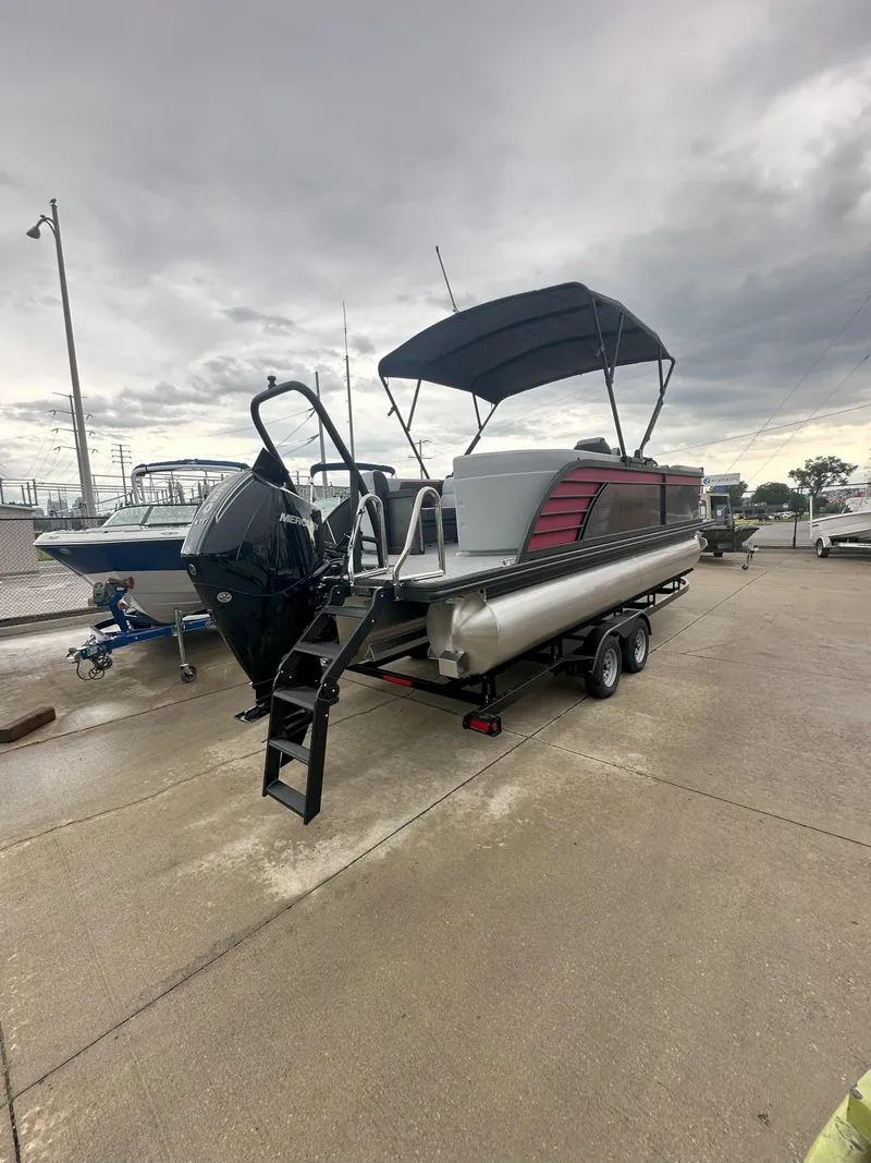 22 Foot Extended deck (24' of deck space) Tri-Toon with top of the line digital throttle/shift 250HP V8 Mercury Outboard. These tri-toons provide a comparable ride comfort and maneuverability of a runabout boat while providing a much bigger deck than a similar length v-bottom.