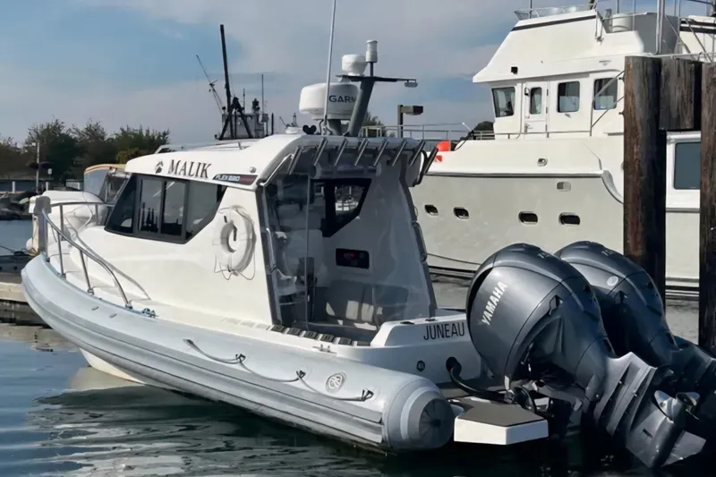 Malik is a RARE find in the Pacific Northwest. If you have not been aboard a Flexboat 680 Explorer you are in for a treat. These great well built pilothouse Inflatable tenders are prefect for our Pacific Northwest Waters. Malik has been used as a tow behind for larger vessel, giving her owners the flexibility to do day trips while leaving the larger vessel at anchor. She is well suited for fishing, shrimping, running for provisions, and all in an enclosed safe space while also having a turn of speed. With a top end of over 40 knots, Malik can cover a lot of ground quickly when needed and can also serve as an island commuter and ferry for friends and family to different locations.