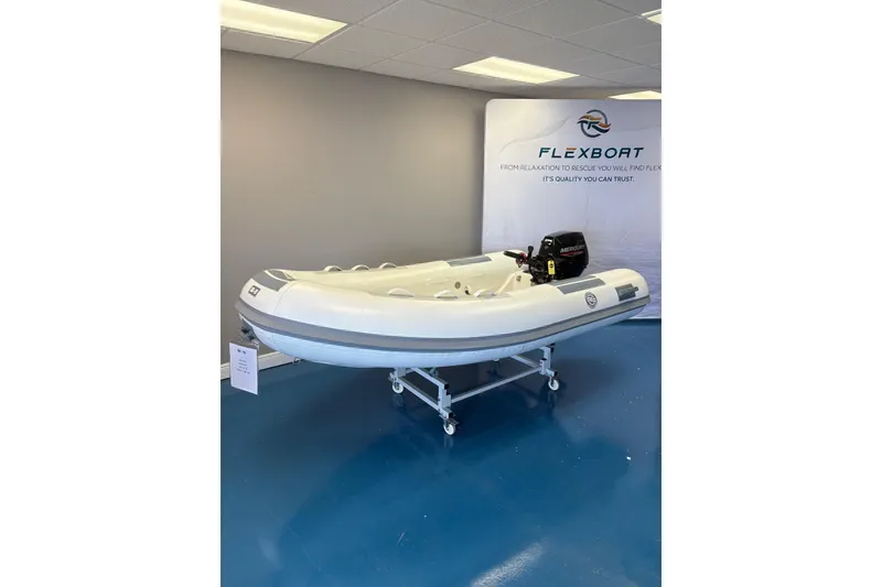 Introducing the 2023 Flexboat SR10, a remarkable Rigid Sports Inflatable designed for adventure and excitement on the water. With an overall length of 10.25 feet, this boat is expertly crafted from durable fiberglass, ensuring both strength and performance. Powered by a reliable Mercury 20 horsepower outboard engine, the SR10 promises a thrilling ride with its direct drive configuration and efficient 3-blade aluminum propeller. This combination delivers an exhilarating experience, perfect for both leisurely outings and spirited excursions. The SR10 is brand new, reflecting the latest in design and technology, making it an ideal choice for those seeking a modern and stylish vessel. Its compact size allows for easy maneuverability, while still providing ample space for enjoyment. Experience the freedom of the water with the Flexboat SR10, where quality meets adventure in every wave.