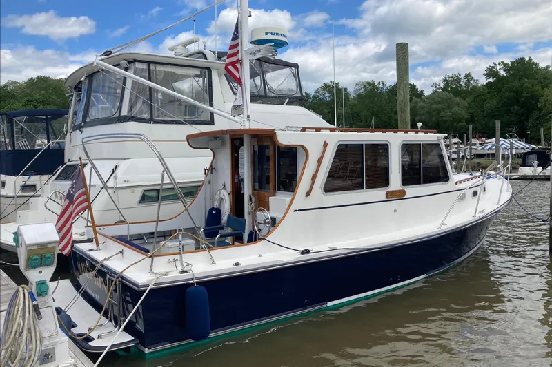The Flye Point (and sister hull, the BHM) are well known for their nice easy motion in a seaway. Many upgrades include Bow Thruster, Flag Blue Awl Grip Hull, Teak & Holly Main Salon Sole, Custom Helm and Compassion Seats, along with many other items. One of the few Downeast style boats in this size range available with a Generator and Heat / Air Conditioning.