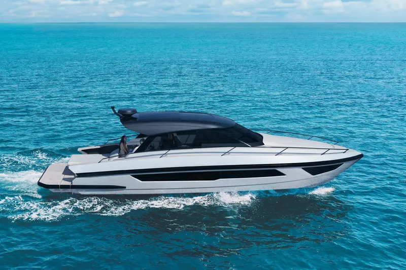 The Focus 3X boasts an innovative exterior with 6.5 ft (2 m) wide electric side windows and an electric glass hardtop in the cockpit, enabling it to seamlessly transition from a luxurious sport cruiser to an almost entirely open boat.
