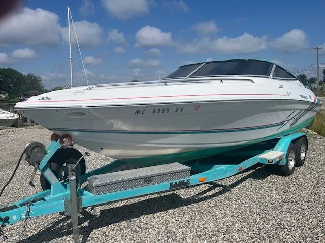 Fresh water powered with a newer 502 MPI and new Bravo 1 out-drive. New helm and shft cable, new JL audio, new cockpit cover, new starter, new fuel pump, new altinater, new gaugers, new Garmin, new sea deck, new sundeck rams, bellows 2 years ago, new trailer tires and boards.