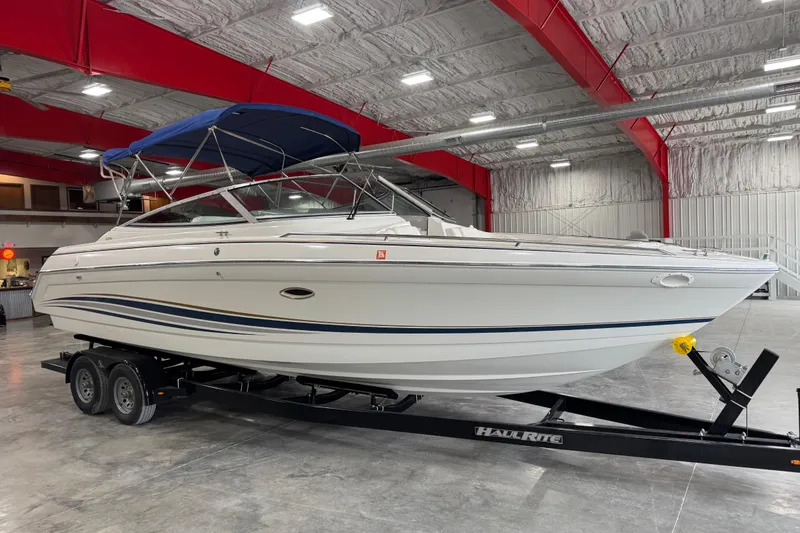 This is a very clean 28 foot bow rider equipped with a single 7.4L Volvo penta 310 hp V8 with only 537 hours on it, duo prop drive, full cover, Bimini Top, bow and cockpit flooring, am/fm stereo, walk-through transom, trim tabs, and more. Price is not include Trailer but we have used it available for $4900 or new for $6900. Financing and delivery are available. We accept trades.