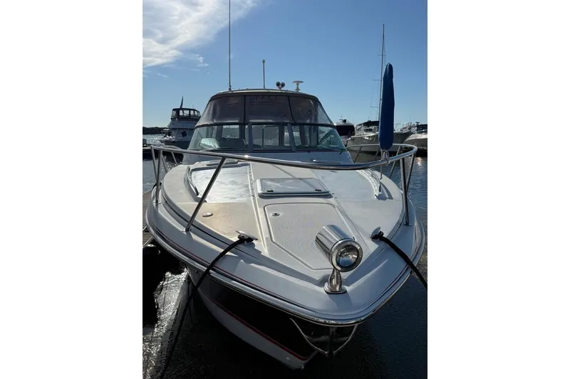 Powered with twin 496 Mag and bravo 3 drives with showers. 400 hours, new bottom paint, new fresh water pump, new grey water bilge pump, new camper canvas & glass in 2022, mooring cover, cherry cabinet doors, Corian Counter tops and 2 tv's. Central vacuum, microwave, stove top, cabin & cockpit fridge, a/c- heat , new batteries and Fusion stereo in 2022. Vacu flush head, shower, Kohler 7.3 ECD generator, windlass with chain, remote spotlight and halon system. CO detector, trim tabs with indicators, bow cushions, bow fender racks . 2023 new mid ship bilge pump, new spark plugs and fuel injectors cleaned.All manuals, all covers for tables, cockpit carpet. This was highly customized boat as it was the Ralph Lauren Edition.