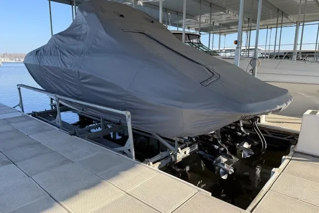 Lift kept under a mooring cover & covered dock this boat has only serviced by Formula Boats of Missouri a certified Mercruiser dealer.