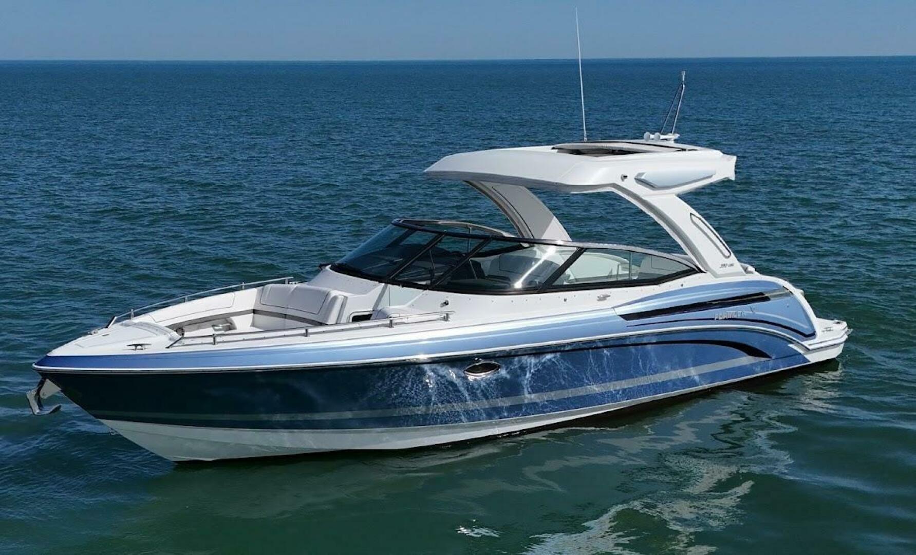 Innovative Features: Includes modern conveniences such as a wet bar, integrated sunpads, and advanced helm controls for an enjoyable boating experience.