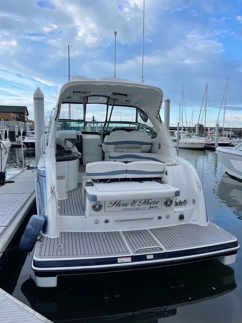 Step aboard this meticulously maintained low hour 2018 Formula 34 PC, an exceptional cruiser designed for both performance and luxury. This yacht boasts NMMA Yacht/CE Certification, ensuring quality and safety. The elegant design features Ashland Maxguard™ LE gelcoat and a stunning Axalta™ Chroma Premier® basecoat with Imron® Elite clearcoat, making this yacht a true head-turner on the water. Exterior Features • Certification: NMMA Yacht/CE • Hull & Structure: o Ashland Maxguard™ LE gelcoat o Pressure-treated Perma Panel™ structural hull matrix o Foam-filled hull cavities o Chemically bonded & thru-bolted deck-to-hull joint o Heavy-duty PVC gunwale w/stainless insert • Propulsion: o Mercury TWIN Seacore 8.2 MAG ECT 380 with 146 hours o Stainless Steel props o STD Seacore OUTDRIVE Bravo 3X 2.0 • Anchor & Windlass: o Electric windlass w/chain counter o 200' chain, polished stainless anchor, remote control o Freshwater anchor washdown system • Deck & Hardware: o Integrated bow platform o Concealed anchor davit w/fiberglass chain locker o Polished remote-control searchlight o Stainless hardware & 316L welded rails o Custom Formula logo-cast cleats, fuel fills, Bomar cabin venting hatches o Nonskid foredeck center walkway & walk-around o Cockpit-coordinated vinyl deck sunpads w/adjustable chaise backrests o Tinted, tempered curved-glass windshield w/center walk-thru o Radar arch w/mast light & white air horn o Clarion® waterproof transom-mounted stereo control o Extended integrated swim platform w/concealed stainless swim ladder & pull-up cleats o Transom shower w/hot & cold controls o Molded transom trunk w/pneumatic lifts, fender storage, four fenders o 120V shore power w/fail-safe galvanic iso & two 30-amp cords o Polished stainless shore power, cable TV & phone inlets & chrome-finished city water inlet Cockpit Features • Seating & Layout: o Continuous molded deck & cockpit liner o Dual position twin command seating o Port & aft U-shaped lounge seating w/fiberglass-lined storage o Two color-coordinated dual-height cockpit tables w/Corian tops & sunpad inserts • Dash & Controls: o Molded fiberglass dash in Charcoal or Mocha o High gloss Charcoal Woodgrain or Dark Woodgrain panels o Ritchie® compass, Raymarine® eS78 GPS chart plotter o Digital depth sounder, illuminated waterproof accessory rocker switches o Tilt wheel in leather-wrapped stainless & lockable under-dash storage compartment o Mercury® DTS w/SmartCraft™ digital gauges & VesselView™ o Electronic shift & throttle controls o Mercury Joystick Piloting or Volvo Joystick or Ilmor One Touch™ o Bennett® trim tab switches & indicators o Clarion dash-mounted stereo control • Audio & Electronics: o Six 6-1/2" speakers w/polished stainless grilles, 200W amplification o 200W cockpit subwoofer & iPod™/MP3 port o Garmin 8216x Chartplotter o Fusion Apollo Audio System o Fusion Audio Cabin, Deck, and Transom Speakers (replaced 6 months ago) • Convenience: o Four dual USB charging ports o 12 polished stainless drink holders o Cockpit/swim platform blue/white LED lights w/remote control o Color-coordinated molded wet bar w/integrated sink, Corian® countertop o 120V/12V pullout refrigerator w/stainless front o Trash container, 316L safety rail, 120V GFCI outlet & fire extinguisher o Disconnect switch for auxiliary 12V power o Pneumatic-assist transom door o Bimini top, front & side curtains w/easy-mount zippers o Extended aft enclosure in color-coordinated non-fading Sunbrella® fabric w/Seamark™ vinyl undercoating Cabin Features • Interior Design: o Sliding/locking cabin door o Solid wood cabin entry steps o Woodgrain-finish flooring throughout o Forward stateroom w/privacy curtain, centerline bed w/Sensus® memory foam mattress o Custom décor pillows & draperies o OceanAir Skysol pleated blind system in galley & dinette o Cabinetry in color-coordinated open-grain or high-gloss finish • Comfort & Entertainment: o 18,000 BTU reverse cycle air conditioner w/digital climate control o Illuminated 120V & 12V electrical panels o 32" LED/LCD HDTV/DVD w/auxiliary HDMI port o Blu-ray Disc player in main salon & dockside access cord o Subscription-ready Sirius™ Satellite Radio • Seating & Storage: o Curved Ultraleather™ sofa seating w/Ultrasuede® lumbar o Dual-height dining table & filler cushions o Cedar-lined stateroom hanging lockers w/automatic lights o Ultraleather aft cabin lounge/double berth w/Ultrasuede lumbar o Removable color-coordinated cocktail table, filler cushion & privacy enclosure o Cedar-lined aft cabin hanging locker w/automatic light o Cedar-lined cabinet w/shelves o Built-in WalVac® sweeper system o In-floor storage compartments • Galley: o Full Corian countertop o Blue LED-lit cabinet showcase w/tempered stemware & tumblers o Beverage center w/Keurig® coffee maker o Polished stainless sink, concealed 2-burner electric stove w/safety switch o 120V/12V stainless refrigerator, microwave oven, in-counter beverage storage o Concealed in-counter trash container & fire extinguisher • Water System: o Demand water system w/57-gallon capacity o One-point water fill for freshwater tank and/or city water o 120V water heater w/heat exchanger o Molded private head compartment w/molded vanity, lower door in color-coordinated open-grain or high-gloss finish o Corian counter, polished stainless sink w/swivel faucet o VacuFlush® head w/40-gallon holding tank & dockside pump-out o Separate stall shower w/hinged acrylic door & exhaust fan • Safety & Electrical: o Two carbon monoxide detectors Engine Room & Performance • Engine Setup: o Twin engine installation w/thru-bolted engine mounts o Motorized hatch lift, courtesy lighting, fume detector & automatic fire extinguisher o Integrated quick-access engine hatch o Twin start & aux batteries w/retainers & 60-amp battery charger o Disconnect switches for starting batteries o Battery parallel emergency switch o Galvanic corrosion protection 
