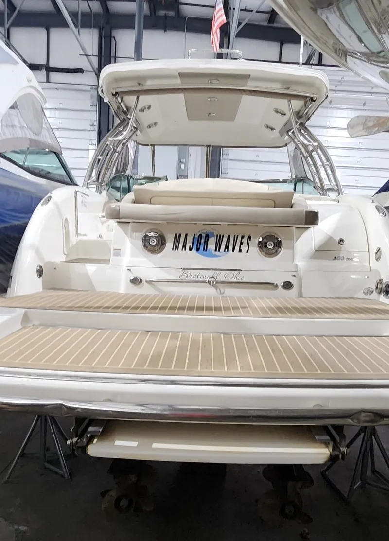 This boat is freshly detailed and ready to be splashed. A quality boat with plenty of eye appeal, the Formula 350 Crossover Bowrider (CBR) bridges the gap between a high-performance sport boat and luxury express cruiser. The 350 is an impressive product-she combines the overnight accommodations of a cruiser, the huge seating area forward of a deck boat, and the cabin accommodations of an express boat. It's a clever combination, and the sheer size of this giant bowrider makes her the ultimate day boat.