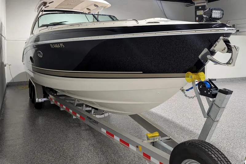 The rear-facing convertible aft sun lounge also adds to the sunning space and overlooks the extended swim platform. An all-new extended water-sport swim platform with four drink holders optional. A starboard side trunk, along with storage under the aft lounge, store boating necessities plus extras for a full day on the water. Blue/white LED lighting is standard on the swim platform and in the cockpit.