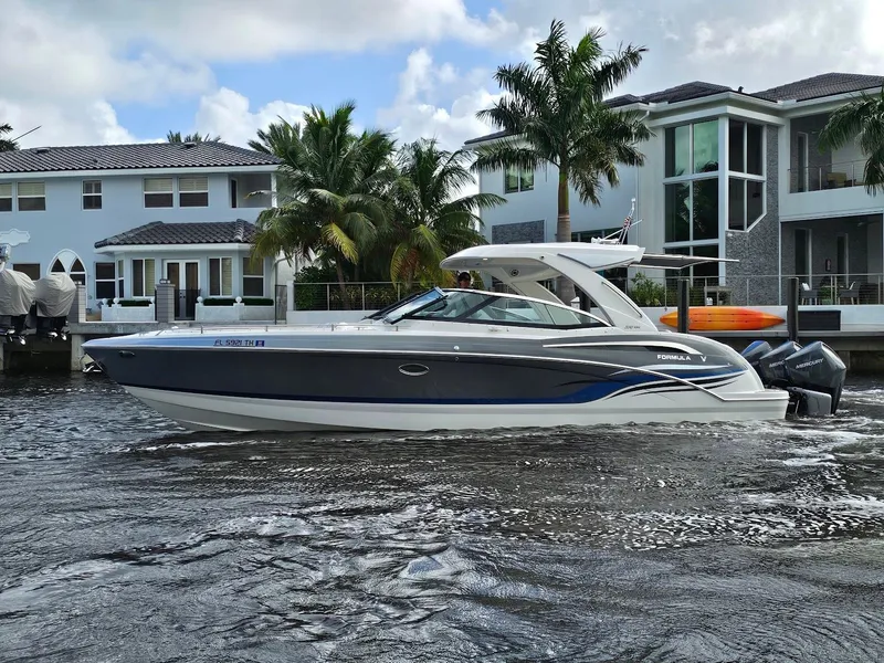 Encouraging offers For thisstunning 2023 Formula 350 Crossover Bowrider, a remarkable vessel that combines luxury and performance. With an impressive overall length of nearly 38 feet, this boat features a sleek fiberglass hull designed in a Deep Vee shape, ensuring a smooth ride even in choppy waters. Powered by a robust 300 hp Merc V8 outboard engine, it effortlessly reaches cruising speeds of 35 mph and can achieve a maximum hull speed of 55 mph, making it perfect for thrilling adventures on the water. The Outer Space accommodates up to 14 passengers!!, providing ample seating for family and friends. Equipped with modern amenities, including joystick control for easy maneuvering and an electric windlass for convenient anchoring, this bowrider is designed for both comfort and functionality. Experience the ultimate in boating with the Formula 350, where every journey becomes a memorable escape with Outer Space