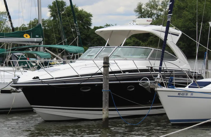 The highlights of "Love N' Business" include a master stateroom forward with a hard door, a queen island berth, ample closet space, drawer storage, a flat-screen smart TV, opening port lights, and an overhead opening hatch with a screen and blackout. The spacious salon features a crescent-shaped dinette across from the fully complimented galley. "Love N' Business" is a dual-voltage fridge and freezer, microwave, recessed two-burner electric cooktop, recessed stainless steel sink, wine glass storage area, Corian countertops, and ample cabinets and storage. The head features a fresh water electronic toilet system, hot/cold shower, and vanity with a fresh water sink. An aft settee area offers comfortable lounge seating, an additional flat screen smart TV, and overhead reading lights. This area can also be converted into a sleeping area for two with a privacy curtain. The cabin exudes a warm, light, and airy feel due to the light veneer cabinetry, faux wood flooring throughout, and solid cabin entry treads with rubber traction inserts. The cockpit area, protected by a factory hardtop, features a double-wide helm seat with flip-up bolsters, a U-shaped aft cockpit lounge seating area with storage beneath, removable cockpit tables, full enclosures with screens in the aft section, a cockpit wet bar with a fresh water sink, snap-in outdoor carpets, and a stainless steel walk-through windshield that leads to the bow area for lounging, handling lines, or anchoring the boat. Overall, "Love N' Business" is in excellent cosmetic condition. Her black Imron hull side paint is in great shape, and her bottom is kept clean monthly by divers. Her current owners' change in plans brings her aggressively to the market, ready for your inspections now! Call our office today for additional information or to schedule a time to come see her. *FACTORY INSTALLED OPTIONS:*