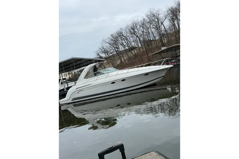 Deck/Hull: Anchor, compass, fenders with fender storage, spotlight, shore water, cockpit wetbar with refrigerator and sink, large swim platform, transom storage, radar arch, walk-thru windshield with integrated steps, foredeck sunpad