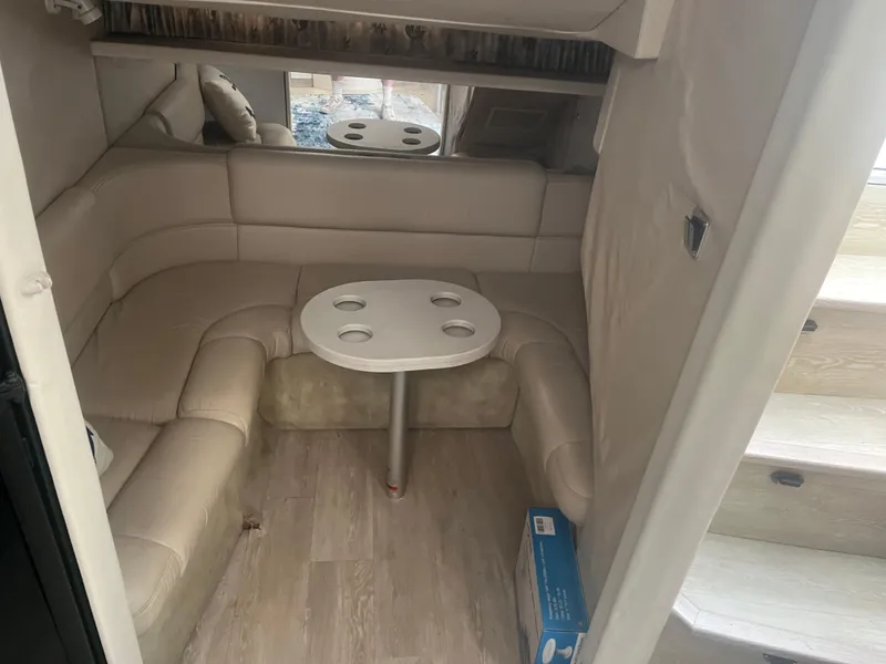 owner moving up. NEW CANVAS(being made this winter), twin CUMMINS 450 black diamond motors 1100 hrs. hydraulic engine hatch sleeps six people. full galley refrigerator, freezer, stove, sink, hot and cold pressure water. full head with stall shower, electric toilet, sink and good storage. windlass, bow rails, full enclosure, large bench seat for helm. circular cockpit seating, cockpit tabletransom door, extra large swim platform, large storage locker in transom. radar, gps, color plotter, 2 vhf's ,compass depth sounder, auto-piolet. stereo and two tv's. 5 batteries, 9 kw genset.2 extra props ,trim tabs and sync's, prop pockets. radar arch