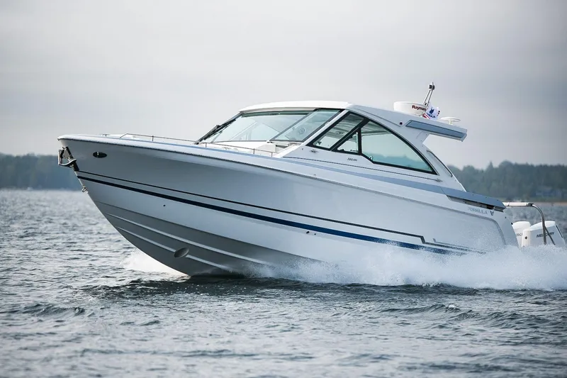 No other 38-foot full-cabin bowrider can boast a full-width cockpit experience with true overnight capabilities for four. The Formula Crossover fleet continues to push class expectations as it challenges others to defy compromise. Everything you want in performance and adventure awaits you in the Formula 380 Super Sport Crossover!