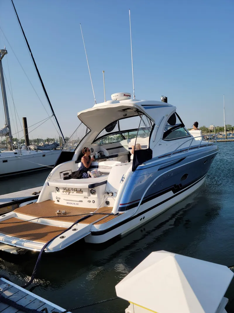 Lady Paula is a gorgeous 2018 Formula 37 PC. She is in like-new condition. She's powered by twin Mercruiser 8.2 MAG HO engines. She cruises at 28 knots with a top speed of 40 knots. Lady Paula can accommodate up to six guests. The Captain's stateroom has an upgraded mattress that has never been slept in. The interior is pristine and includes 4 flat screen TVs. The head includes vacuflush toilet with a holding tank capacity of 55 gallons, Corian countertops, integrated stand-up shower, full length mirror and plenty of storage. Her upholstery is in like new condition and new isinglass has been replaced in the full bimini enclosure. She is loaded with equipment including Raymarine radar, joystick for easy entry and exit to the dock, skyhook, and upgraded trim tab system. There are many upgrades including state of the art fusion sound system, Dual 12 inch Raymarine screens, and new macerator. Just turn the keys and leave the dock.