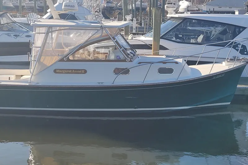 The 2015 Fortier 30 Express represents the perfect blend of classic Downeast craftsmanship and modern performance. Built by Fortier Boats in Maine and owned by a single knowledgeable owner since new, this vessel showcases exceptional attention to detail, timeless lines, and rugged seaworthiness. At 30 feet, she offers the ideal balance of offshore capability and comfortable day-to-day cruising, making her equally at home chasing fish or enjoying relaxed coastal runs. Runs. Powering this Fortier are twin Volvo Penta D4 225-hp diesel engines with just 650 original hours, delivering reliable, fuel-efficient performance and excellent range. Known for their durability and smooth operation, these diesels provide confident cruising speeds, impressive torque, and economical operation-perfect for serious boaters who value efficiency without sacrificing capability. Maintained with pride, this propulsion package reflects the overall quality and care of the vessel.Below deck and throughout the cockpit, the Fortier 30 Express offers a thoughtful layout designed for comfort and functionality. The spacious cockpit is ideal for fishing, entertaining, or cruising, while the warm, well-finished cabin provides shelter and convenience for extended days on the water. With her single-owner history, low hours, and legendary Fortier pedigree, this 2015 Fortier 30 Express is a rare opportunity to own a truly refined and capable Downeast cruiser.