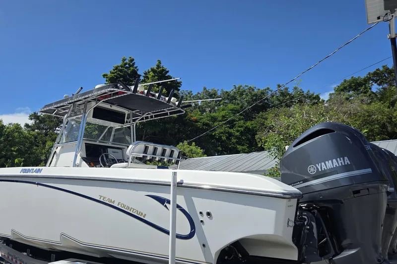 The Fountain 34 Sportfish CC Open Bow was designed with the tournament fisherman in mind, but it certainly doubles as a dive or runaround boat. A 9'6" beam makes the 34 easy to trailer and provides a smooth, stable ride in the ocean. This boat incorporates a Generation III positive lift, notched transom and pad keel hull design. Triple Yamaha 300HP engines push this boat. The 34, with quick ratio power hydraulic steering, gives you ultimate control in rough or calm seas. It's high-tech race proven construction is the same technology used on our high performance offshore boats