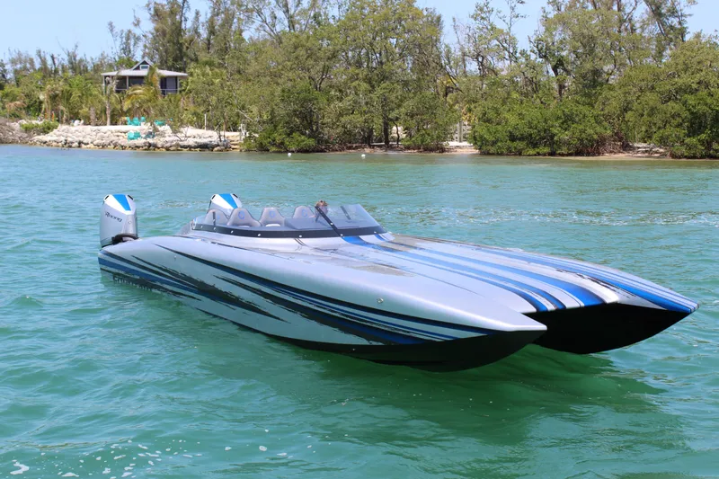Fast, solid and predictable, the Fountain 34 Thunder Cat with twin 500Rs runs bow-eye to bow-eye with the fastest production cats in this size range.