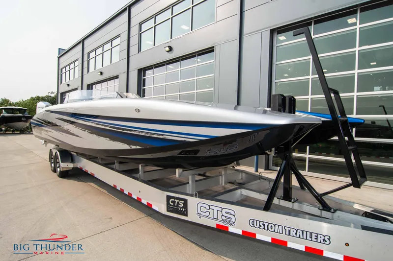 2025 Fountain 34 Thunder Cat Twin Mercury Racing Verado 500R's, Black Engine Pkg. Carbon Fiber Engine Scoops. 5 Axis Cleaver Props. Custom Paint & Graphics. Mercury DTS Zero Effort Controls. Charcoal Cool Touch Upholstery w/ Cool Touch Black Accents, Pacific Blue Piping, Cool Touch Light Gray Quilted Panels & Bright Blue Stitching, . Charcoal/Aegean Blue Fountain Pattern Marine Mat Flooring. Cool Touch Black Dash Pad. Polished Metal Hardware. Shadow-Caster RGB Underwater & Interior Lighting Control System. Premium JL Audio System w/ (2) Additional 10" Subs & Amp Upgrade. Platinum Gray/Titanium Speaker Covers. Garmin GPSmap 8622 22" Multi-Function Display. VesselView 703 Engine Monitoring Display. LED Push Button Switches. Isotta Italian Leather Wrapped Polished Stainless Steering Wheel. Battery Charger. Cockpit Cover.