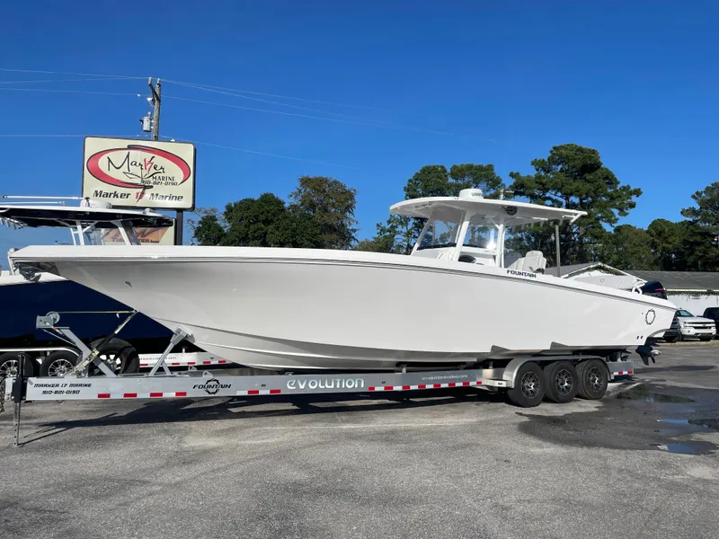 - Center console, pre-wired, fiberglass w/flush mount electronics locker, one-piece plexiglass windshield, molded footrest, walk-in head w/VacuFlush, shower, sink, and 25 quart cooler under forward-facing seat.
