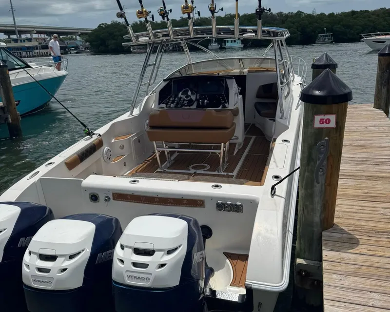 The 2006 Fountain 38 LX is designed for boating enthusiasts who seek a powerful and stylish performance boat. Ideal for those who enjoy offshore fishing, high-speed cruising, and comfortable day trips, this boat offers a blend of speed, durability, and luxury. It's perfect for experienced boaters looking for a reliable vessel that delivers both excitement on the water and ample space for family and friends. Whether you're chasing big game fish or enjoying a fast ride to your favorite destination, the Fountain 38 LX meets the demands of serious anglers and recreational boaters alike.