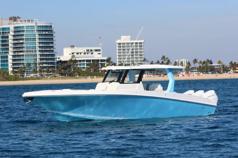 This 2025 Fountain 38 SCX is a high-performance powerhouse built to take on any adventure at sea. Powered by triple Mercury Verado V10 400HP engines, this boat can reach speeds of up to 80 mph, delivering an exhilarating ride every time you hit the water.