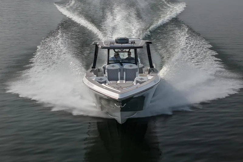 This 38 SCX is powered by triple Mercury Verado 400R outboards with Sportmaster gearcases and jackplates, delivering incredible power and responsiveness. With Mercury Joystick Piloting, docking and maneuvering are simple and precise whether you're pulling into a marina or backing into a slip.