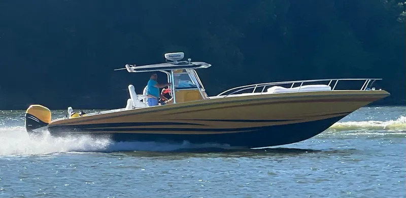 This ultimate fishing machine will definitely get you hooked with the perfect blend of performance, ride comfort, dependability and efficiency. Whether you're a world-class angler or a weekend fisherman, this 38' center console with its 10'6" beam is the perfect fishing vessel. As Fountain's largest fishing boat, this Tournament Edition will take you to the fish fast, smooth, safe and comfortably in rough or calm seas.