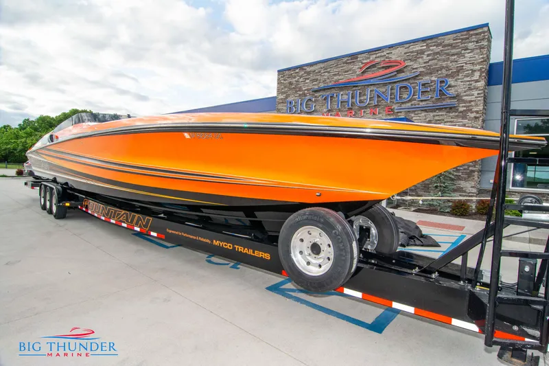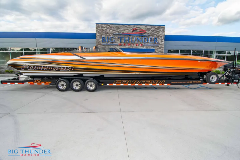 2020 Fountain 47 Lightning.Twin staggered Mercury Racing Dual Calibration 1550/1350 QC4v's (120+ mph on 1350 mode - Fresh Mercury Rebuilds - full on year warranty on power and boat), DTS controls, M8 dry sump drives, 5-blade cleaver props, 380 K-Planes w/ LED indicators, Fresh water flush system, Visual Imagination paint & graphics, Gray/orange marine mat flooring, Lumitec Sea Blaze 2 RGB lighting system, Transom shower, Garmin 7616 16" multifunction display, VesselView 403 display, Passenger Garmin 8610 10" display, (4) Mercury VesselView passenger seatback displays, Electric bolsters, Premium JL Audio stereo system w/ transom remote, Dometic Turbo DTU 6 self-contained cabin AC, Westerbeke generator, Cabin fridge & fresh water sink, Cabin TV, Enclosed Tecma Nano head w/ holding tank & overboard discharge, Shower, Battery jump terminal, Full cover, Custom triple axle Myco trailer included. Financing and nationwide delivery available, trades considered. Boat was inspected at Fountain Certified and now carries a one year warrant on the entire boat.