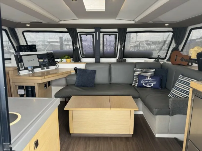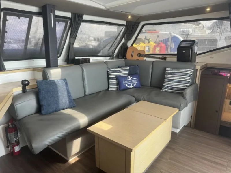 The Flying Tortuga is a beautifully maintained 2018 Fountaine Pajot Lucia 40, 3-cabin 2 head, Owner's Version catamaran for sale, thoughtfully outfitted for serious bluewater cruising and liveaboard comfort.