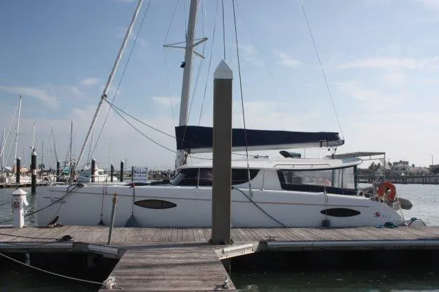 A superb bluewater cruising catamaran built by one of the most well renowned yards for this type of boat offering a well-equipped layout with multiple bedrooms and bathrooms. The cockpit features a large table seating 8 and open directly through a large sliding door on the same level to the saloon and the galley with a panoramic view through wrap around windows. This boat will take you in considerable style, security and comfort wherever you want to go. Built with long term cruising in mind she is built to last with everything well-constructed and heavy deck gear throughout, she is capable of proving all the comfort you want from a cruising catamaran with good sailing performance to match.