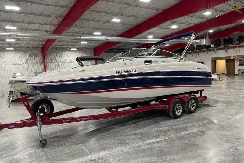 !!! Only 238 Hours !!! Mercruiser 350 MPI Mag !!! this is a clean one owner 26 foot deck boat equipped with a MerCruiser 350 MPI Mag 300 hp V8, bravo three Drive, Bow and cockpit cover, Bow and cockpit flooring, enclosed head, walk-through transom, extended swim platform, and more. Price does not include Trailer but we have used if available for $3900 or new for $5900. Financing and delivery are available. We accept trades.